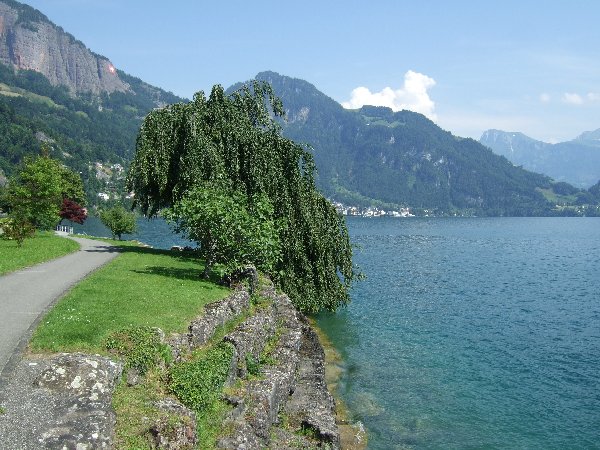 Blick zurück auf den Ort Brunnen, da gegenüber tummelt sich die berühmte Rütli-Wiese, aber dazu kommen wir später nochmal.