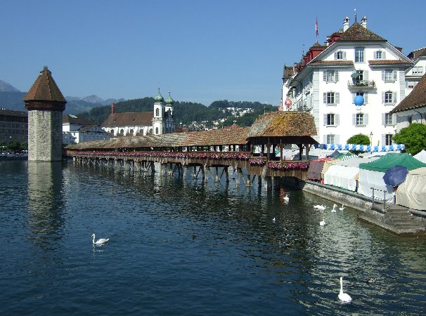 Das Bild täuscht (mal wieder), am nächsten Morgen bevölkerten ganze Heerscharen die Straßen von Luzern. Später hörte ich dann im Radio, dass man an diesem Tag hier abends ein gigantisches Feuerwerk zum Besten gab - tja, dumm gelaufen, um einen Tag verfehlt.